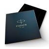 Материал коробки: картон кашированный мелованной бумагой с матовой ламинацией и золотым тиснением лого Parker. Защитный транспортный шубер из белой матовой мелованной бумаги.